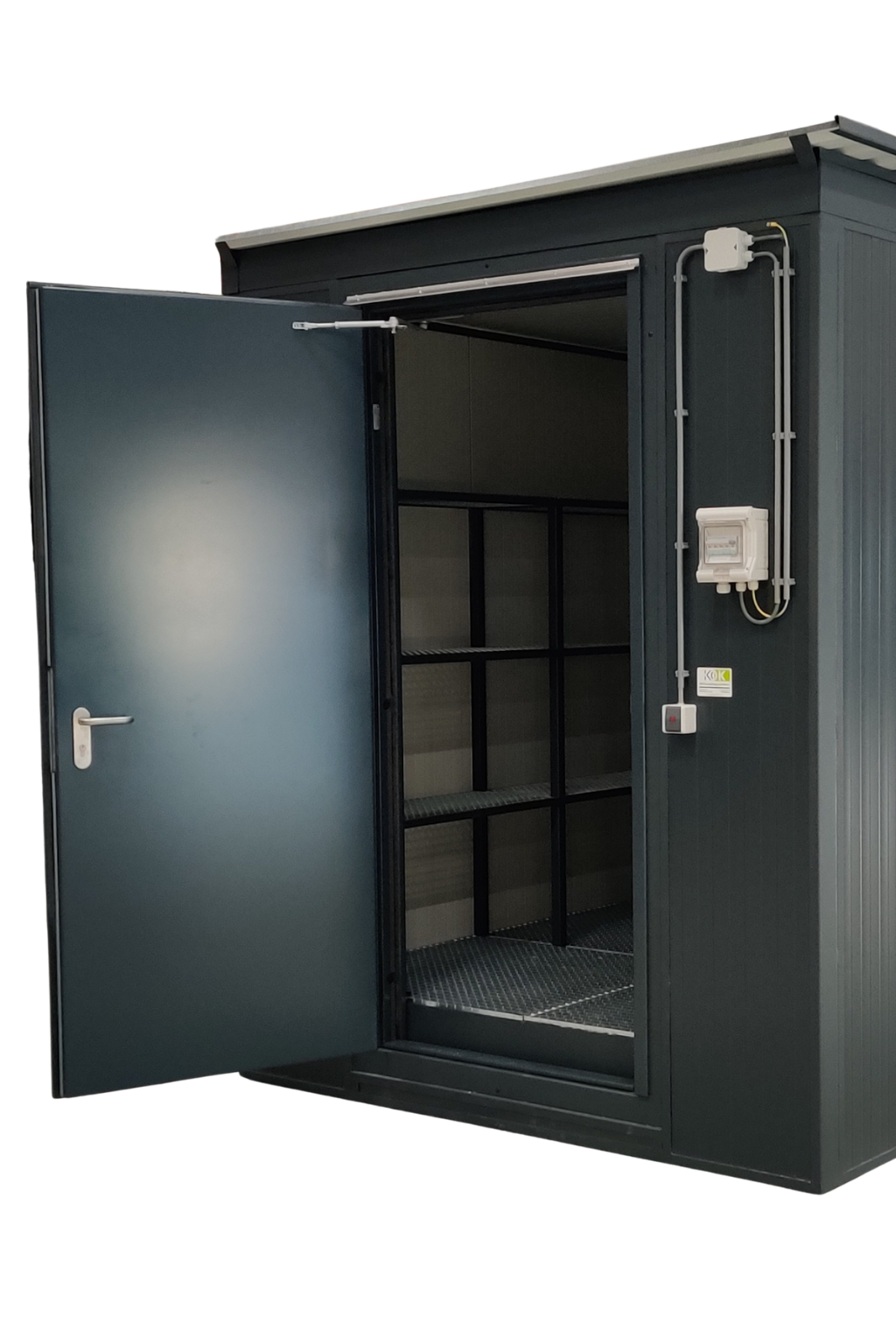 Kontener typu Walk-In został zaprojektowany jako uniwersalne rozwiązanie do bezpiecznego przechowywania baterii litowo-jonowych oraz urządzeń i pojazdów elektrycznych o większych gabarytach. Dzięki konstrukcji umożliwiającej swobodne wejście do wnętrza kontenera, rozwiązanie to sprawdza się wszędzie tam, gdzie konieczne jest składowanie większej liczby akumulatorów, zróżnicowanych rozmiarów baterii lub całych urządzeń w jednym, wydzielonym miejscu.