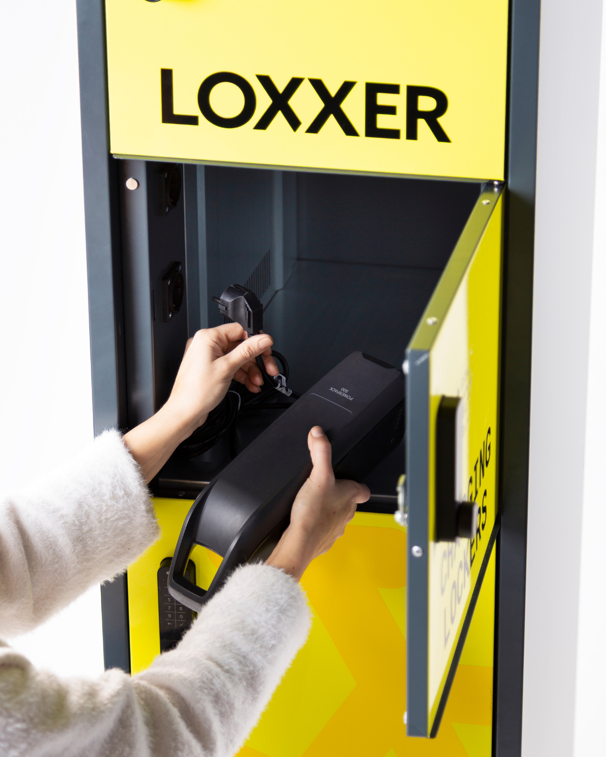 Każda skrytka stanowi wydzieloną, indywidualną przestrzeń do przechowywania baterii oraz podłączenia ładowarki użytkownika.